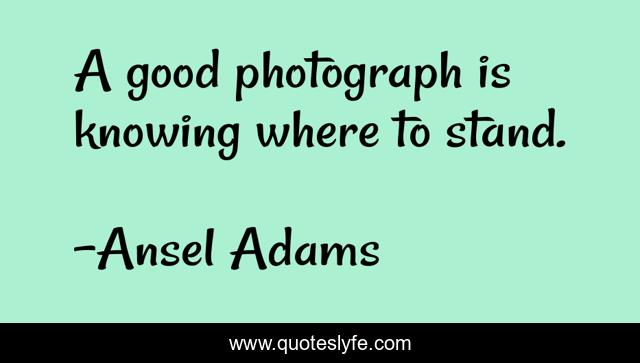 "Ansel Adams Quotes." Quoteslyfe.com, 2025. Sat. 06 Dec. 2025. <https://www.quoteslyfe.com/quote/A-good-photograph-is-knowing-where-to-303505>.