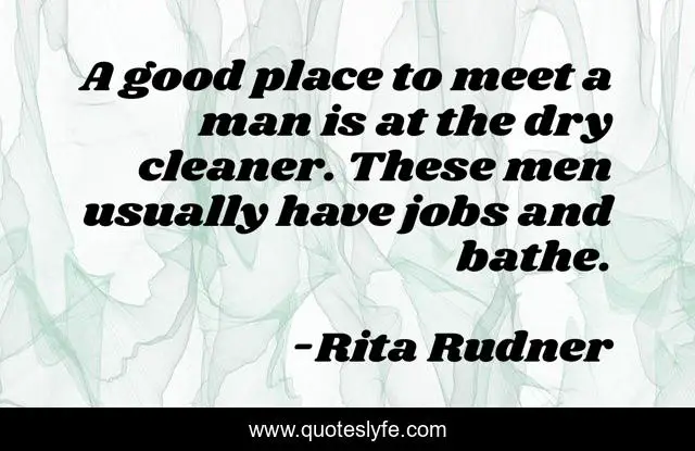 This page presents the quote "A good place to meet a man is at the dry cleaner. These men usually have jobs and bathe.". Author of this quote is Rita Rudner. This quote is about relationships, dating, meeting-men,.
