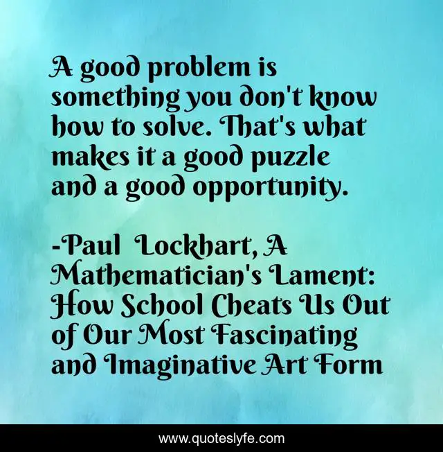 "Paul Lockhart, A Mathematician's Lament: How School Cheats Us Out of Our Most Fascinating and Imaginative Art Form Quotes." Quoteslyfe.com, 2025. Fri. 05 Dec. 2025. <https://www.quoteslyfe.com/quote/A-good-problem-is-something-you-don-33587>.