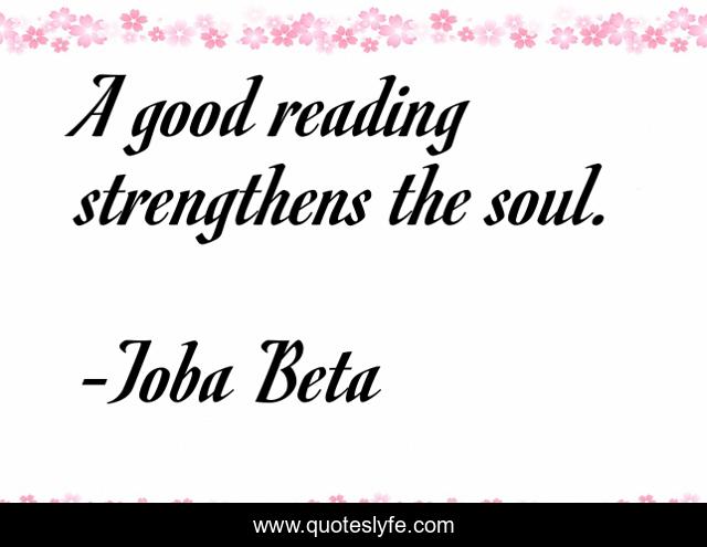 This page presents the quote "A good reading strengthens the soul.". Author of this quote is Toba Beta. This quote is about strength, reading, soul,.