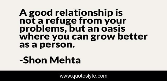 This page presents the quote "A good relationship is not a refuge from your problems, but an oasis where you can grow better as a person.". Author of this quote is Shon Mehta. This quote is about oasis, refuge, relationship,.