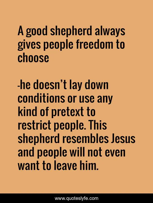 Check all other quotes by he doesn’t lay down conditions or use any kind of pretext to restrict people. This shepherd resembles Jesus and people will not even want to leave him.