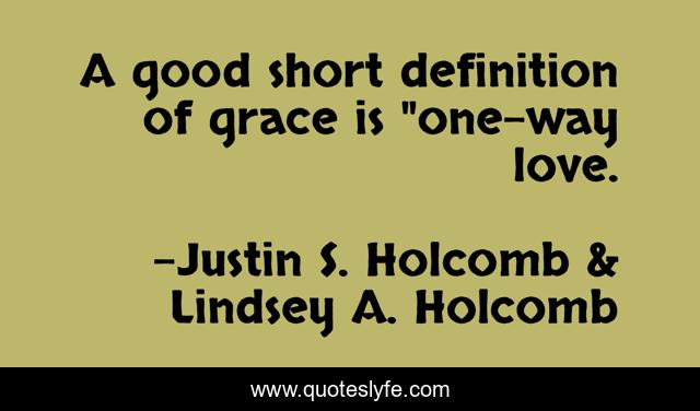 This page presents the quote "A good short definition of grace is "one-way love.". Author of this quote is Justin S. Holcomb & Lindsey A. Holcomb. This quote is about god, grace,.