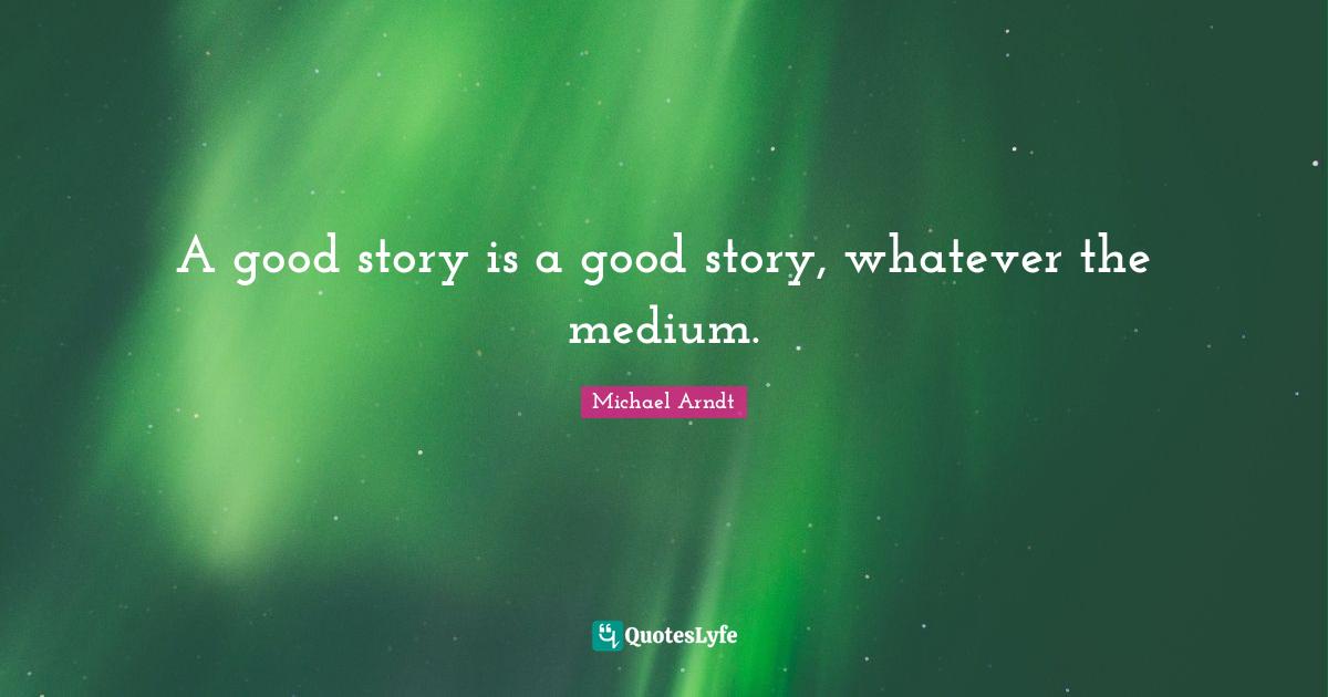 This page presents the quote "A good story is a good story, whatever the medium.". Author of this quote is Michael Arndt. This quote is about mediums, stories, good story,.