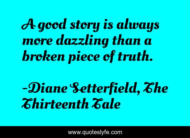 "Diane Setterfield, The Thirteenth Tale Quotes." Quoteslyfe.com, 2025. Fri. 05 Dec. 2025. <https://www.quoteslyfe.com/quote/A-good-story-is-always-more-dazzling-26853>.