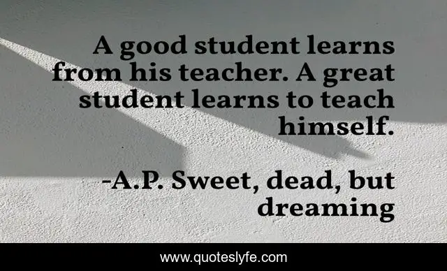"A.P. Sweet, dead, but dreaming Quotes." Quoteslyfe.com, 2025. Fri. 05 Dec. 2025. <https://www.quoteslyfe.com/quote/A-good-student-learns-from-his-teacher-198587>.