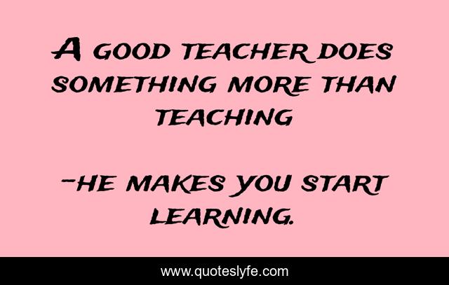 "he makes you start learning. Quotes." Quoteslyfe.com, 2025. Sun. 07 Dec. 2025. <https://www.quoteslyfe.com/quote/A-good-teacher-does-something-more-than-117467>.