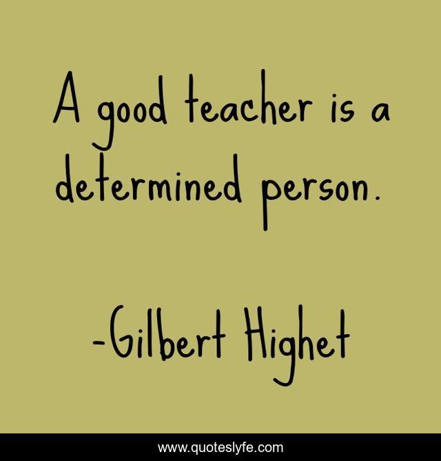 This page presents the quote "A good teacher is a determined person.". Author of this quote is Gilbert Highet. This quote is about person, good, good teacher,.