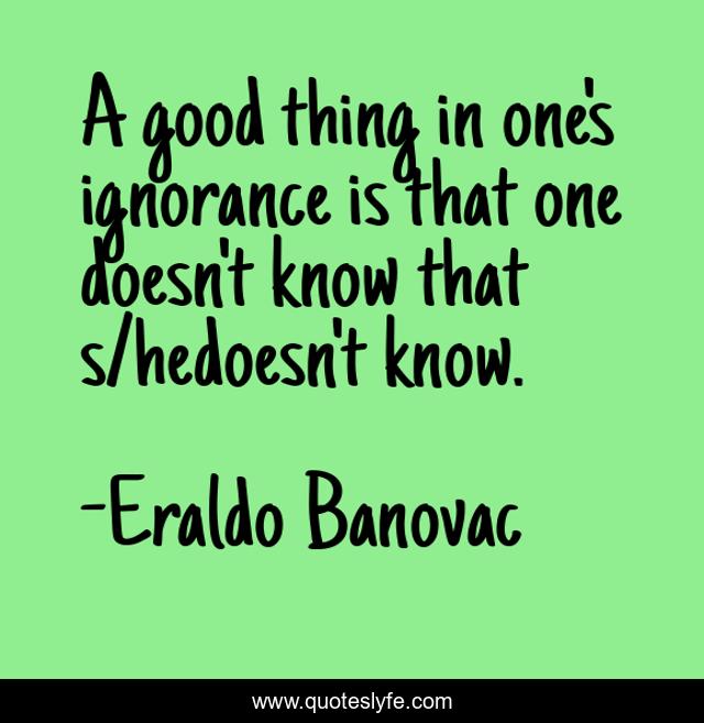 "Eraldo Banovac Quotes." Quoteslyfe.com, 2025. Sun. 07 Dec. 2025. <https://www.quoteslyfe.com/quote/A-good-thing-in-one-s-ignorance-166608>.