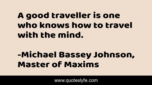 "Michael Bassey Johnson, Master of Maxims Quotes." Quoteslyfe.com, 2025. Mon. 08 Dec. 2025. <https://www.quoteslyfe.com/quote/A-good-traveller-is-one-who-knows-53182>.