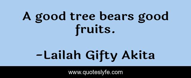 "Lailah Gifty Akita Quotes." Quoteslyfe.com, 2025. Mon. 08 Dec. 2025. <https://www.quoteslyfe.com/quote/A-good-tree-bears-good-fruits-205383>.