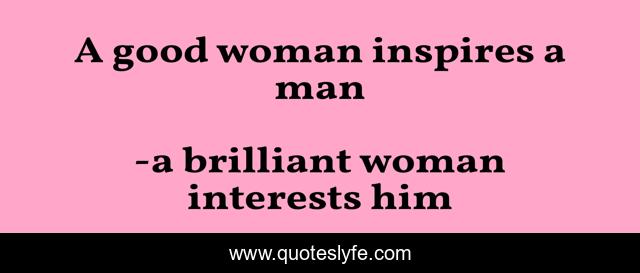 "a brilliant woman interests him Quotes." Quoteslyfe.com, 2025. Mon. 08 Dec. 2025. <https://www.quoteslyfe.com/quote/A-good-woman-inspires-a-man-162453>.