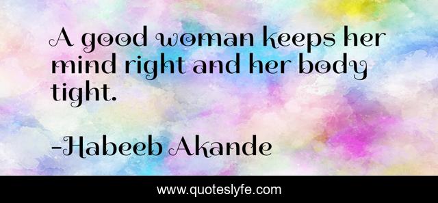 This page presents the quote "A good woman keeps her mind right and her body tight.". Author of this quote is Habeeb Akande. This quote is about body, mind, woman, physique, fitness,.