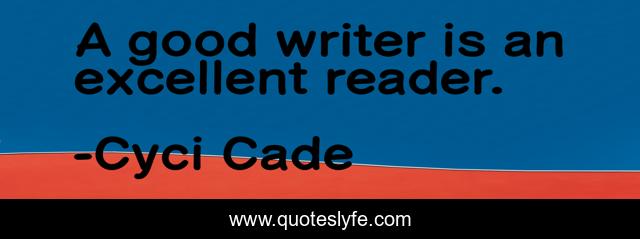 This page presents the quote "A good writer is an excellent reader.". Author of this quote is Cyci Cade. This quote is about writer, reader,.