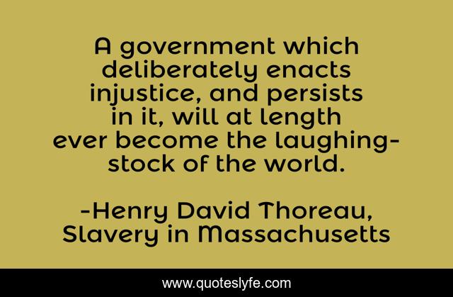 "Henry David Thoreau, Slavery in Massachusetts Quotes." Quoteslyfe.com, 2025. Mon. 08 Dec. 2025. <https://www.quoteslyfe.com/quote/A-government-which-deliberately-enacts-injustice-and-176726>.