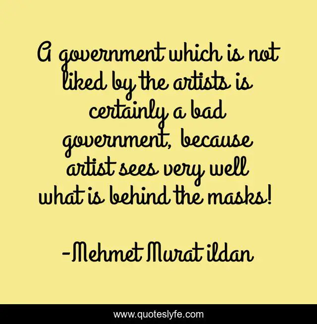 This page presents the quote "A government which is not liked by the artists is certainly a bad government, because artist sees very well what is behind the masks!". Author of this quote is Mehmet Murat ildan. .