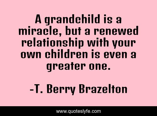 This page presents the quote "A grandchild is a miracle, but a renewed relationship with your own children is even a greater one.". Author of this quote is T. Berry Brazelton. This quote is about renewed, children, miracle,.