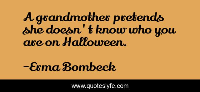 This page presents the quote "A grandmother pretends she doesn't know who you are on Halloween.". Author of this quote is Erma Bombeck. This quote is about funny, comedy, humor, amusing,.