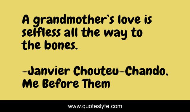This page presents the quote "A grandmother’s love is selfless all the way to the bones.". Author of this quote is Janvier Chouteu-Chando, Me Before Them. This quote is about confidence, philosophy, success, positive, motivational, wisdom, romance, spirituality, optimistic,.