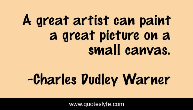 This page presents the quote "A great artist can paint a great picture on a small canvas.". Author of this quote is Charles Dudley Warner. This quote is about small, great, artist,.