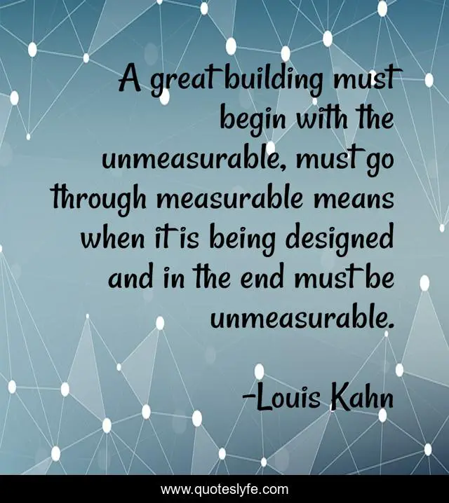 A great building must begin with the unmeasurable, must go through measurable means when it is being designed and in the end must be unmeasurable.