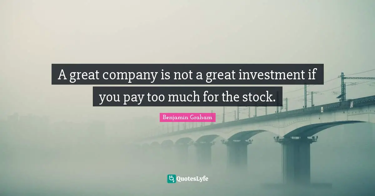 This page presents the quote "A great company is not a great investment if you pay too much for the stock.". Author of this quote is Benjamin Graham. This quote is about investment, great company, pay, too much, investing,.