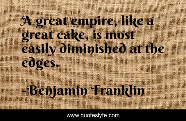 "Benjamin Franklin Quotes." Quoteslyfe.com, 2025. Mon. 08 Dec. 2025. <https://www.quoteslyfe.com/quote/A-great-empire-like-a-great-cake-311059>.