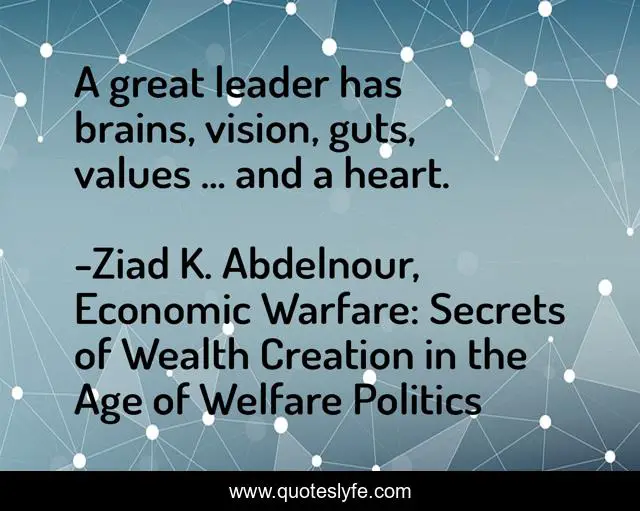 "Ziad K. Abdelnour, Economic Warfare: Secrets of Wealth Creation in the Age of Welfare Politics Quotes." Quoteslyfe.com, 2025. Mon. 08 Dec. 2025. <https://www.quoteslyfe.com/quote/A-great-leader-has-brains-vision-guts-194460>.