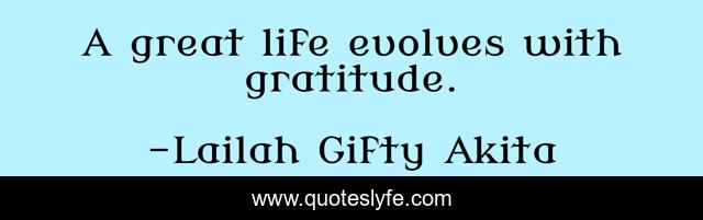 This page presents the quote "A great life evolves with gratitude.". Author of this quote is Lailah Gifty Akita. This quote is about thankful, life-and-living,.