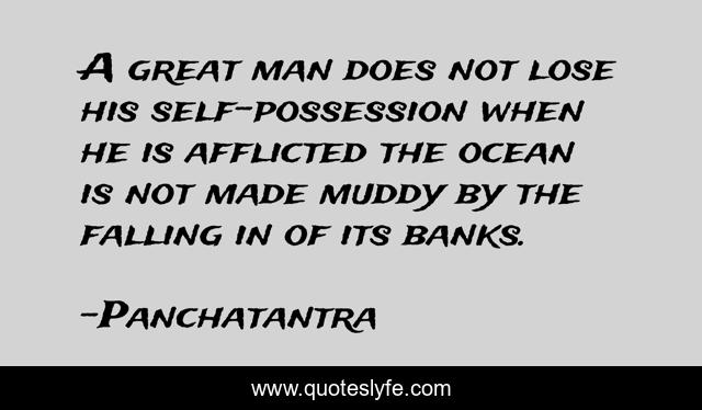 This page presents the quote "A great man does not lose his self-possession when he is afflicted the ocean is not made muddy by the falling in of its banks.". Author of this quote is Panchatantra. .