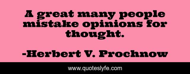 This page presents the quote "A great many people mistake opinions for thought.". Author of this quote is Herbert V. Prochnow. This quote is about thought, opinion,.
