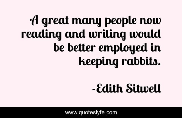 This page presents the quote "A great many people now reading and writing would be better employed in keeping rabbits.". Author of this quote is Edith Sitwell. This quote is about writers, writing,.