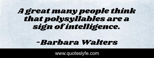 This page presents the quote "A great many people think that polysyllables are a sign of intelligence.". Author of this quote is Barbara Walters. This quote is about great, think, people,.