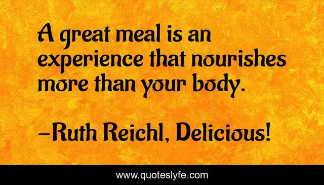 "Ruth Reichl, Delicious! Quotes." Quoteslyfe.com, 2025. Mon. 08 Dec. 2025. <https://www.quoteslyfe.com/quote/A-great-meal-is-an-experience-that-168132>.