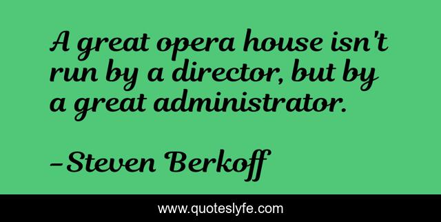 This page presents the quote "A great opera house isn't run by a director, but by a great administrator.". Author of this quote is Steven Berkoff. This quote is about director, house, run,.