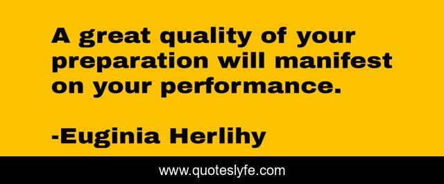 This page presents the quote "A great quality of your preparation will manifest on your performance.". Author of this quote is Euginia Herlihy. .