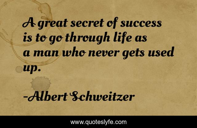 This page presents the quote "A great secret of success is to go through life as a man who never gets used up.". Author of this quote is Albert Schweitzer. .