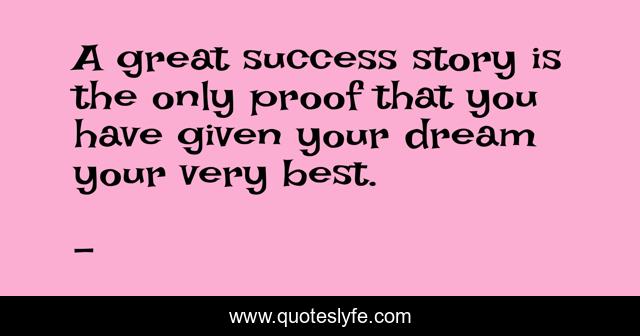 This page presents the quote "A great success story is the only proof that you have given your dream your very best.". Author of this quote is . This quote is about give-your-dream-your-very-best, great-success, success, edmond-mbiaka, your-dream, massive, success-story, your-dreams,.