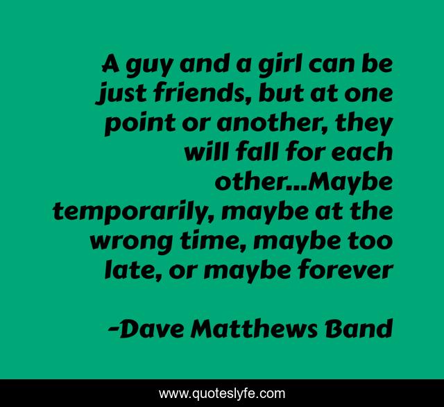 This page presents the quote "A guy and a girl can be just friends, but at one point or another, they will fall for each other...Maybe temporarily, maybe at the wrong time, maybe too late, or maybe forever". Author of this quote is Dave Matthews Band. This quote is about relationships, friends, love, affection, dave-matthews,.