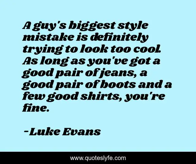 "Luke Evans Quotes." Quoteslyfe.com, 2025. Sun. 07 Dec. 2025. <https://www.quoteslyfe.com/quote/A-guy-s-biggest-style-mistake-is-287955>.