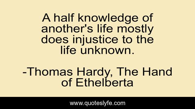 This page presents the quote "A half knowledge of another's life mostly does injustice to the life unknown.". Author of this quote is Thomas Hardy, The Hand of Ethelberta. .