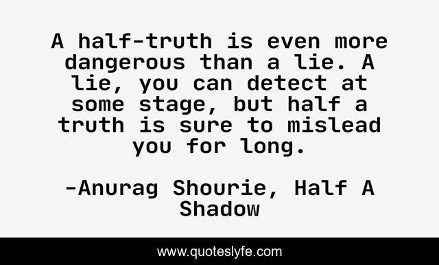 "Anurag Shourie, Half A Shadow Quotes." Quoteslyfe.com, 2025. Sun. 07 Dec. 2025. <https://www.quoteslyfe.com/quote/A-half-truth-is-even-more-dangerous-167395>.