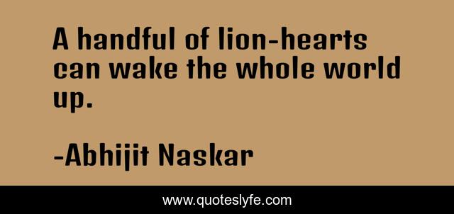 "Abhijit Naskar Quotes." Quoteslyfe.com, 2025. Mon. 08 Dec. 2025. <https://www.quoteslyfe.com/quote/A-handful-of-lion-hearts-can-wake-123958>.
