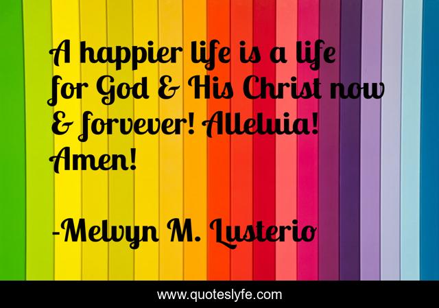 This page presents the quote "A happier life is a life for God & His Christ now & forvever! Alleluia! Amen!". Author of this quote is Melvyn M. Lusterio. This quote is about perfect, joy, wise, truth,.