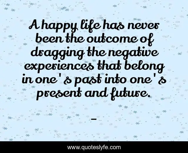 A happy life has never been the outcome of dragging the negative experiences that belong in one's past into one's present and future.