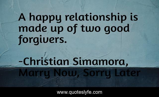 This page presents the quote "A happy relationship is made up of two good forgivers.". Author of this quote is Christian Simamora, Marry Now, Sorry Later. This quote is about love, relationship, jboyfriend, romantis, romance-novels, affection,.
