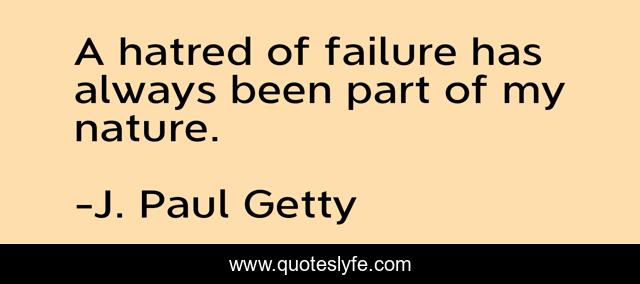 This page presents the quote "A hatred of failure has always been part of my nature.". Author of this quote is J. Paul Getty. This quote is about always, hatred, nature,.