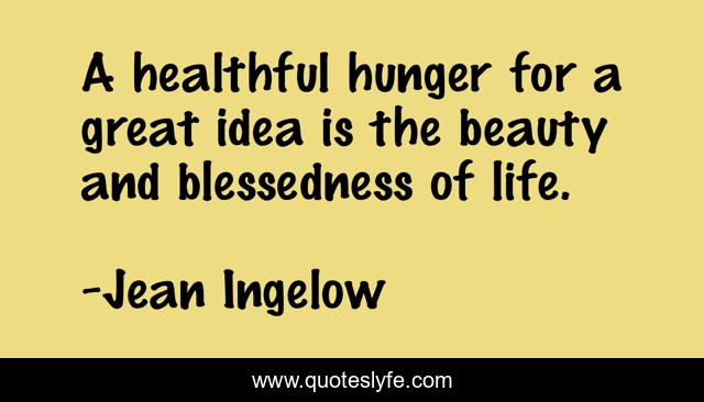 This page presents the quote "A healthful hunger for a great idea is the beauty and blessedness of life.". Author of this quote is Jean Ingelow. This quote is about life, great, idea,.