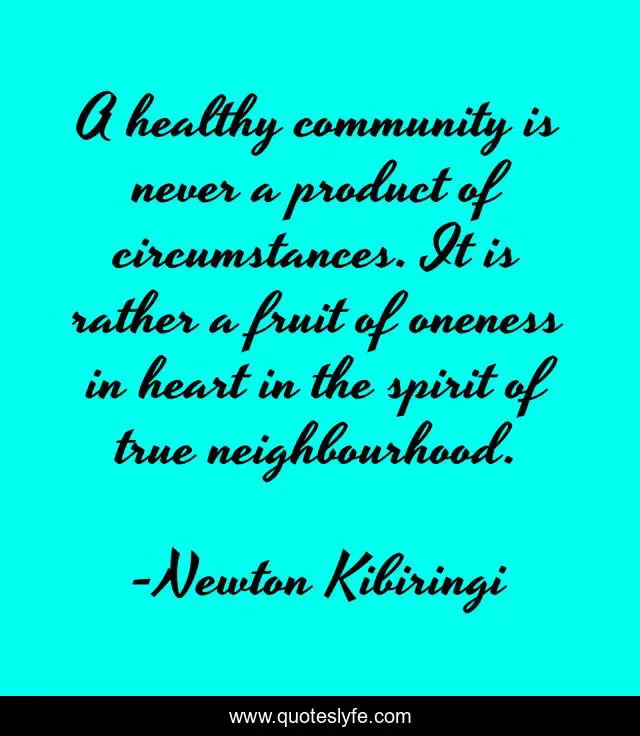 This page presents the quote "A healthy community is never a product of circumstances. It is rather a fruit of oneness in heart in the spirit of true neighbourhood.". Author of this quote is Newton Kibiringi. This quote is about unity, love, community, affection,.