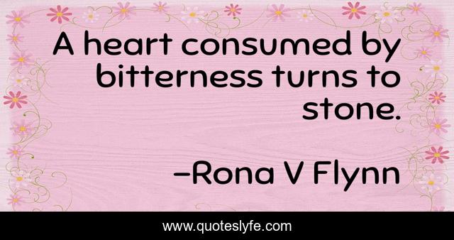 "Rona V Flynn Quotes." Quoteslyfe.com, 2025. Fri. 05 Dec. 2025. <https://www.quoteslyfe.com/quote/A-heart-consumed-by-bitterness-turns-to-180063>.